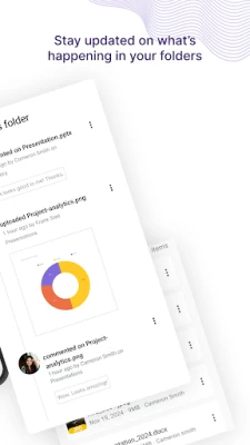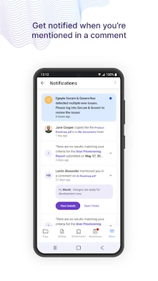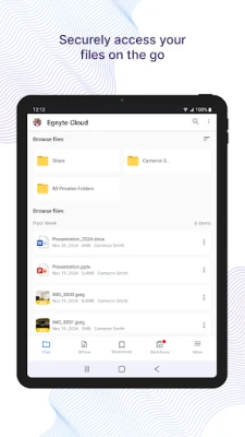 Easily set up permissions for authorized access, create link expirations, and receive notifications if/when files are accessed. Keep files secure on your mobile device with data encryption, application-specific passcodes, and remote wipe capabilities for lost/stolen devices.