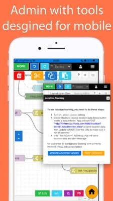 A mobile app client for Node RED -great tool for Smarthome and IOT-, quickly access Dashboard and Admin with optimized tool, editor, location tracking and more. Current features: