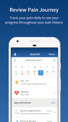 • Pain Diary – log and track your pain to track triggers, pain intensity, symptoms, treatments, medications, activity, mood, and sleep digital scale.