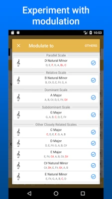 BACKWARD - From the catalog, pick a set of chords that you like. The app will tell you what scales it matches with. After you have selected the scale you want to use, the app can tell you what chords will fit in with the ones you entered before. That is extremely useful in jam sessions!