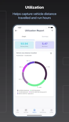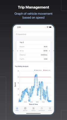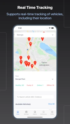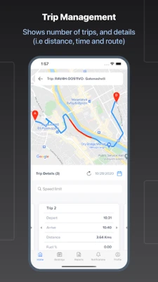 • Trip management: Supports real-time tracking of vehicles, including their location, number of trips, and details (i.e. distance, time and route).