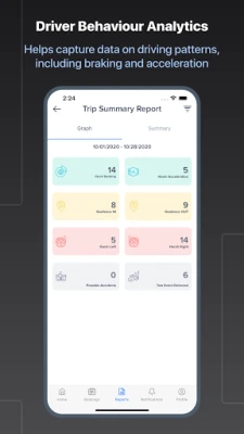 • Driver behavior analytics: Helps capture data on driving patterns, including braking and acceleration, fuel usage, and speed as measured by revolutions per minute (RPM).